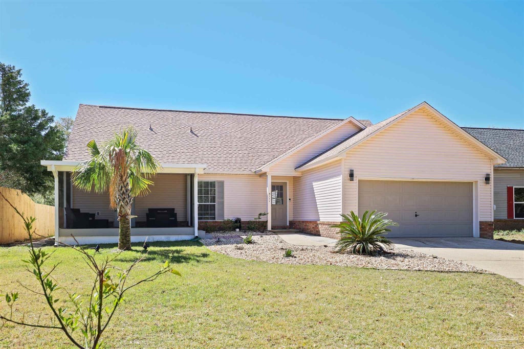 Nestled in the heart of Gulf Breeze, this beautifully updated 4-bedroom, 2.5-bath residence offers an ideal blend of style, space, and serenity — all just minutes from the beach. From the moment you arrive, you're greeted by a manicured front yard with tropical landscaping, a welcoming covered porch, and timeless curb appeal. Step inside to discover a completely remodeled kitchen that will impress any home chef — boasting sleek two-tone cabinetry, quartz countertops, modern herringbone tile backsplash, black stainless appliances, and a bold copper pull-down faucet at the oversized undermount sink. Entertain effortlessly with a spacious open floor plan that flows into a large sunroom, flooded with natural light and framed by gorgeous picture windows — perfect for game nights, morning coffee, or indoor-outdoor dining. The primary suite is a relaxing retreat with plush carpeting, crown molding, and direct access to the sunroom. The en-suite bath stuns with a walk-in glass shower, spa-like stone tile, custom vanity, and a vessel sink. Step out back to your private oasis: a fully fenced oversized yard with endless potential. Whether it’s a pool, garden, or play space — there’s room for it all. Plus, enjoy the added bonus of a detached storage building with coastal flair, ideal ashore additional storage or a workshop.