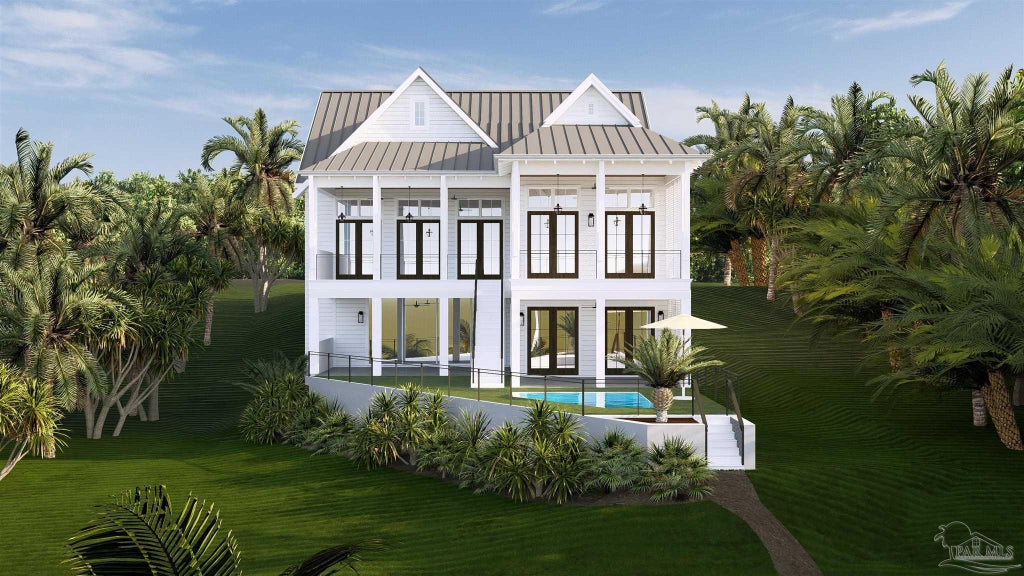 Welcome to this one-of-a-kind luxury residence. Situated in the highly desired Gulf Breeze Proper neighborhood, this brand-new custom home will blend timeless coastal architecture with sophisticated modern finishes and thoughtful functionality. Spanning 4,473 square feet of heated living space and over 6,400 total square feet, this two-story home will feature 4 bedrooms, 4.5 bathrooms, and a 2-car garage, offering elevated living for both relaxation and entertainment.You will step through the inviting front porch into a light-filled open-concept living and dining area with soaring 12-foot ceilings, custom millwork, and expansive glass French doors that will lead to multiple balconies with stunning water views, overlooking lush landscaping, and a serene private pool oasis. The gourmet kitchen will be a chef’s dream with high-end appliances, a walk-in scullery, and custom cabinetry. You will retreat to the elegant primary suite on the main floor, complete with private patio access, a spacious walk-in closet, and a luxurious en suite bath. The ground level will feature a full guest suite, a large game room, and direct access to the pool deck — perfect for entertaining. Outdoors, you will enjoy Gulf Coast breezes from the two large covered balconies, a resort-style pool, and a dedicated outdoor kitchen area. The professional-grade landscaping, privacy louvers, and a gently sloping lot will provide both tranquility and curb appeal. This will be a thoughtfully designed home with high-end finishes throughout, offering a true blend of form and function for luxury coastal living.