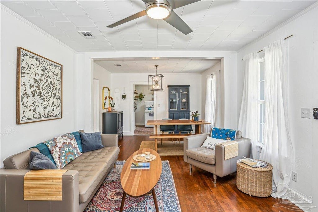 FULLY FURNISHED ADORABLE COTTAGE located just off Historic North Hill. Whether you're a first-time buyer, looking to downsize, or seeking an excellent investment opportunity, this home offers comfort, charm, and convenience just minutes from downtown. Step inside to discover a fresh, modern interior with brand-new paint, stylish furnishings, and thoughtfully chosen finishes. The home retains its character with original hardwood flooring while adding warmth & practicality with newly installed brick tile kitchen floors. The kitchen is both functional and charming, featuring a space-saving washer/dryer combo, tile backsplash, and stainless steel refrigerator. With two well-appointed guest bedrooms & newly tiled bathroom. Complete with a nostalgic built-in phone niche-this home is both cozy and full of personality including a sun room that doubles as another sleeping area Outside, enjoy the shaded backyard oasis with a freshly painted deck, comfortable seating area, and a firepit perfect for evening gatherings. There's even space to add a pool! Imagine biking downtown to the Saturday market, returning with fresh produce to cook in your stylish kitchen, or enjoying a relaxing evening by the firepit after a night out at a local show. This home truly offers it all. Recent upgrades include:2023 Roof2023 Electrical System2020 Central HVAC2022 Spray Foam Insulation2025 Interior Paint2025 Kitchen & Bathroom Flooring. Don’t miss the chance to own this adorable and move-in-ready gem in one of Pensacola’s most desirable locations.