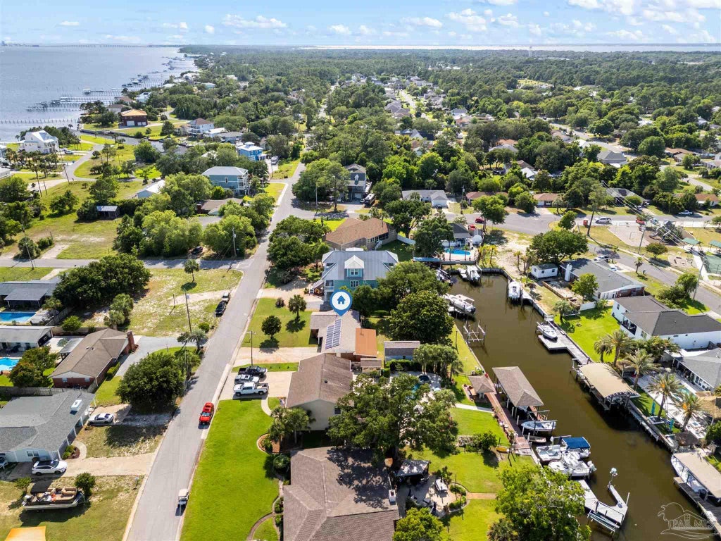 Open House 10-18-25 2pm-4pm New Improved price!!! Seller is willing to entertain offers. Meticulously maintained solid brick 3-bedroom, 2-bath canal-front home in the highly sought-after Santa Rosa Shores community of Gulf Breeze. This beautifully cared for residence features tile flooring throughout, an open-concept layout with a spacious living area, and a converted garage that adds extra living space complete with a large gas fireplace—perfect for relaxation or entertaining. The kitchen boasts custom maple cabinets, upgraded stainless steel appliances, a gas range, ample counter space, and custom bar stools that convey with the property. Washer and dryer also convey. Enjoy year-round comfort in the expansive 300 sq ft heated and cooled enclosed sunroom, overlooking a huge backyard that leads to your private dock with a 12,000-lb boat lift, 81 ft of canal frontage, and direct canal access to Santa Rosa Sound. Additional storage room located off the Sunroom. Energy-efficient features include a fully paid-off solar panel system, a hybrid hot water heater, and a durable 2024 roof by Iron Clad Roofing. All windows and the roof are equipped with hurricane protection for added safety and peace of mind. Additional amenities include a brand new HVAC system installed May 2025, sprinkler system supported by a deep well for irrigation purposes, RV hookup with dumping station, a 12 by 24 ft YARD Barn with extra loft space, work benches, pegboard and cabinets for storage, completely wired with lighting, a transferable termite bond, and a usable survey. Desirable Gulf Breeze school system, Oriole Beach boat ramps, Tiger Point gulf coarse, and newly renovated Swenson Park all within 1 mile make this a prime location to call your new Home!