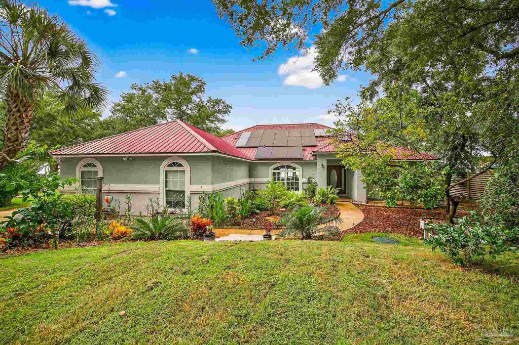 Escape to your own private waterfront retreat on East Bay. Tucked into a serene waterfront setting on over half an acre, this custom-built home offers 100 feet of pristine bay frontage and unobstructed sunset views. With a spacious open-concept layout, high ceilings, and walls of windows, the home is designed to showcase the natural beauty surrounding it while delivering comfort and elegance inside. The heart of the home is the expansive living area and gourmet kitchen, complete with granite countertops, stainless steel appliances, and a large island perfect for gathering.The primary suite and a secondary bedroom each have private access to the pool, creating a resort-like experience right at home. The primary suite is a peaceful sanctuary featuring bay views, patio access, and a spa-style bath with dual vanities, a soaking tub, and walk-in shower. Two additional bedrooms and a large bonus room offer space for guests, a home office, or media room. Step outside to true waterfront living: a covered lanai, paver patio, private dock with boat lift, and your own stretch of white sand shoreline. Whether you're sipping coffee with the sunrise or enjoying a sunset cruise, this home delivers the ultimate Gulf Breeze lifestyle—peaceful, private, and unforgettable.