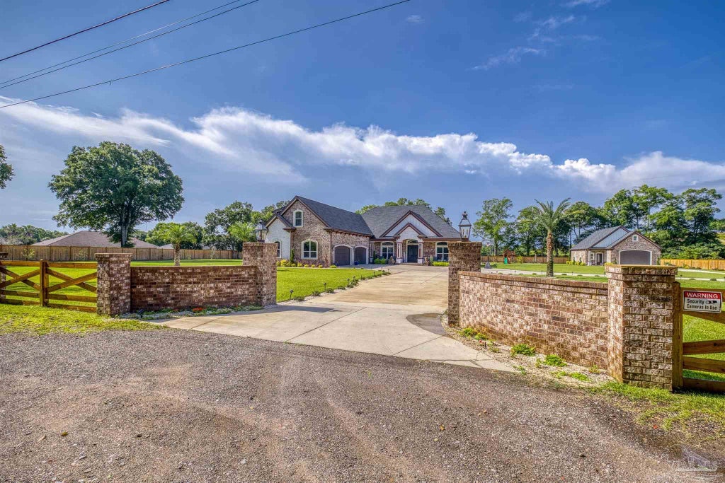 This over 5,000 sq ft custom built 5/5 home located in the heart of Pensacola and our beautiful white beaches is absolutely STUNNING. When you drive up to this estate -- the garage is completely finished and wired for 2 A/Cs and a 1/2 bath. As you open the gorgeous custom front door you walk into an open plan with an amazing view of the office, dining area, living room and luxurious chef's kitchen & island that has all the bells & whistles. With a beautiful view of the outdoor living/pool/spa area. The lighting and fixtures in this home are custom to say the least. To the right 2 Bedrooms with jack&jill bath and a full bath with access to outdoor area. To the left is the Master Suite with an expansive high-end bath with Marble and Custom walk in shower/wet room and Closet is a absolute dream. Laundry is off the kitchen and stairs to upstairs large sitting/living area & game area extends to 2 bedrooms & 2 Custom Bathrooms which follows into 2 large rooms that continues into a massive heated & cooled storage/multi-purpose room. There is nothing Builder's Grade in this home -- The large separate 2 story building has so much potential -- Electricity/Plumbing and 1/2 bath as well as partially finished upstairs area could be finished to make it your own. Sprinkler system keeps the grounds lush for this over 2 acres allows you privacy & plenty of room to entertain family & friends. Home has spray foam throughout. Words cannot give an accurate portrayal of this one of a kind home -- it is a must see!!!!! ADJACENT LOT -- 1.91 Acres for sale as well.