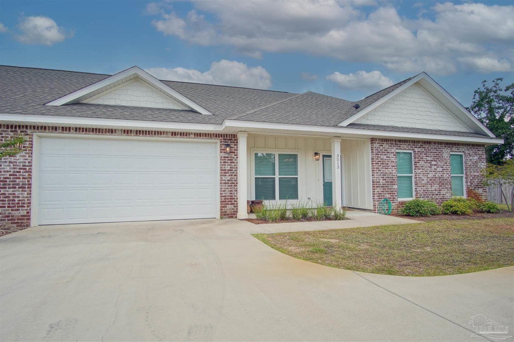 Stunning 3 bedroom, 2 bathroom brick townhome with a 2-car garage located in the highly desired Gulf Breeze area within the Seabreeze Villas subdivision, just off Hwy 98 near Tiger Point Country Club. Built in 2021, this home offers over 1,400 sq. ft. of beautifully designed living space featuring vaulted ceilings, luxury vinyl plank flooring throughout (no carpet), recessed lighting, and an open-concept layout. The spacious kitchen includes granite countertops, stainless steel appliances, and a breakfast bar overlooking the living area. The primary bedroom suite features a vaulted ceiling, recessed lighting, ceiling fan, walk-in closet, and a private bath with a tub/shower combo. Two additional bedrooms include ceiling fans and share a full bathroom with a granite-topped vanity and tub/shower combo. The indoor laundry room includes washer/dryer hookups. French doors lead to a covered patio and a large, privacy-fenced backyard. Lawn maintenance is included. Pet-friendly with owner approval and a $250 non-refundable pet fee per pet (no aggressive breeds considered). Residents are required to have renter's liability insurance, which can be added for $11.95/month, or you can opt into our Resident Benefits Package (RBP) for $45/month. The RBP includes renter liability insurance, HVAC air filter delivery, and on-demand pest control. More details available in the application. Ready for move-in!