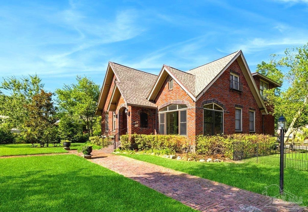 This charming 4BD/3BA Tudor-style home, w/garage apartment, blends classic character with modern updates—just outside the historical district restrictions. Enjoy original hardwood floors, an updated kitchen, large dining room, custom millwork, two fireplaces, two Florida rooms, two primary suites, high ceilings, and a finished basement. The first floor primary bedroom with en suite bath offers privacy and convenience. The second floor offers a primary bedroom with an updated en suite bath, two additional bedrooms and bath. A detached 3BD/1BA garage apartment w/separate address (201 W Moreno) & electric, provides rental income or guest quarters. Recent upgrades include new roof (main 2025, apt 2021), electric, HVAC, and water heaters. Finished workshop/garage and generous storage throughout complete the package!