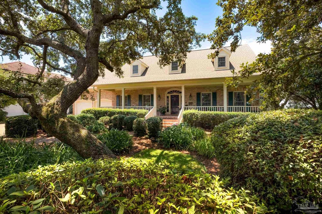 Commanding stunning bay views from one of the highest points and most beloved neighborhoods in Gulf Breeze, this stunning waterfront home is waiting for you! Mature oak trees shade the front yard and the sprawling front porch leading to the front door, step inside to three floors of timeless waterfront living, with a water view greeting you the second you enter the front door. Chicago brick defines the hallways and contrasts beautifully with the wood accents throughout the first floor. To your right, a spacious sitting room is ready for company, opening to a formal dining room via double pocket doors. Across from the dining room, the chef’s kitchen features abundant work surfaces and cabinet space, with stainless appliances, a family dining area and three-seat breakfast bar. The great room is stunning, with huge views of Pensacola Bay, a brick fireplace and beautiful built-in shelves. Behind the kitchen, the laundry/utility room leads to the double garage, as well as a bathroom shared with a spacious guest bedroom. Upstairs, the primary suite of this home is a stunning retreat. The bedroom opens to the outdoor deck with more amazing water views, while a separate study is around the corner. The master bathroom features a garden tub, two walk-in closets and a double vanity. Two more upstairs bedrooms complete this floor’s living spaces, sharing a Jack-and-Jill bathroom. This home’s split-level design also features a fully-finished ground floor, offering a second living room, full bathroom, and a bedroom. This level is ideal for a kids play area, home office, gym and so many more possibilities! Outside, this home features a 45-foot elevation to preside over the waterfront. A newly-built set of stairs leads down to the lush shoreline with unlimited potential for a boat dock and recreation area. Minutes away from award-winning schools, shopping, boat launches and the beach, this home is the perfect forever home for true Florida living. Don’t miss this chance!