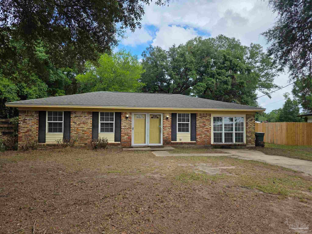 Welcome to this 3BR/1.5BA home located in Pensacola. This home boasts a spacious living/dining combo, perfect for entertaining, and an eat-in kitchen for additional dining space. The kitchen also features a handy pantry for extra storage. The master bedroom is a true retreat with sliding doors leading to a private back deck, perfect for morning coffee or evening relaxation. The master bedroom also includes a convenient half bath. The home offers an additional sunken den, providing extra space for relaxation or entertainment. Please note, the fireplace in the den is non-functional. The home is equipped with central heat and air, ensuring comfort in all seasons. The flooring is a mix of wood-look vinyl plank and carpet, adding a touch of elegance and warmth. The property includes an inside laundry room with additional storage and W/D hookups for your convenience. The home is all electric, making it energy efficient. The open back patio and fenced backyard offer a great outdoor space for recreation or relaxation. Small pets will be considered upon owner approval with a $325 non-refundable pet fee per pet (limit 2). No smokers, please. Roommate applicants, if accepted, must qualify individually.