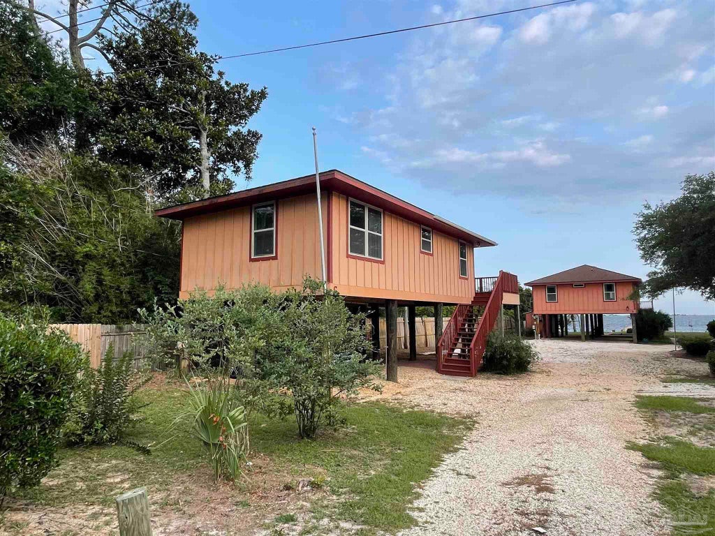 Back on the market at no fault of the sellers! Don’t miss this rare opportunity to purchase two completely independent houses on one lot on highly desirable Soundside Drive in Gulf Breeze. Live in one and rent out the other. Built in 2008, the main house is a 3/2 and the secondary house is a 1/1. Both have newly renovated interiors that are beautiful and bright open-concept designs with coastal colors. The exteriors have large decks with views, impact windows and doors, and are built high and dry on pilings, creating amazing space below for covered parking and additional entertaining space. Steps from the Woodlawn Beach Boat Ramp, the property includes an abundance of parking for boats and trailers, a newly rebuilt 200’ dock, a large storage shed, a blueberry garden, and low-maintenance landscaping. Catch red fish, speckled trout, crabs and beautiful sunsets from the dock. Located equally distant from Navarre Beach and Pensacola Beach, this is an ideal location. Zoned for top rated schools. Whether you’re an investor looking for an income producing short term rental opportunity, or you’re looking for your primary residence, the possibilities are endless with this fantastic property. All utilities are separated and each house has its own address. Upgraded from septic to city sewer (2025). Business license available permitting short/long term rentals specific to property due to its grandfathered in multi-family usage. Currently 5231/5233 Soundside Dr function as one combined property called Soundside Cove. They are listed for sale separately, as well as together. Refer to mls #668745 for the listing containing both properties.