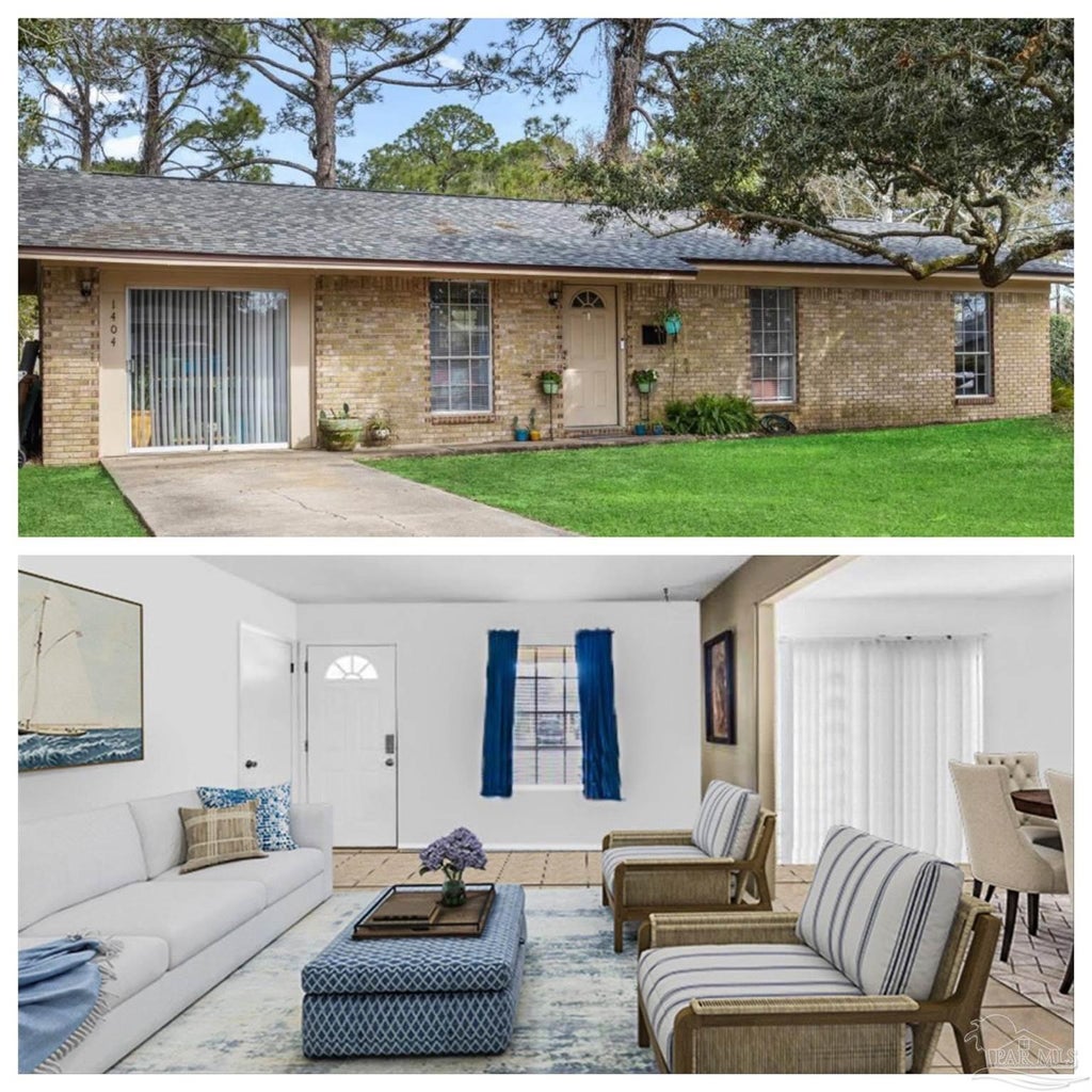 Charming one-story brick ranch with a fully fenced backyard, offering both privacy and low-maintenance living. In 2022, the kitchen was beautifully remodeled with new shaker cabinets, open shelving, stainless steel appliances, and warm butcher block counters. The primary half bath has plenty of space to add a shower for a convenient full bath conversion. Perfect for first-time buyers or investors—both short-term and long-term rentals are allowed. No carpet in home, tile in the living areas and luxury vinyl plank in the bedrooms. Additional features include an oversized laundry room with pantry storage, a new roof (2022), new HVAC (2020), and a 2015 water heater. Located in the sought-after Gulf Breeze school district—Gulf Breeze Elementary, Middle, and High. Enjoy being close to shopping, hospitals, and just 7 miles from the emerald waters and sugar-white sands of Pensacola Beach. Flood insurance is not required. Please make an appointment to view today!
