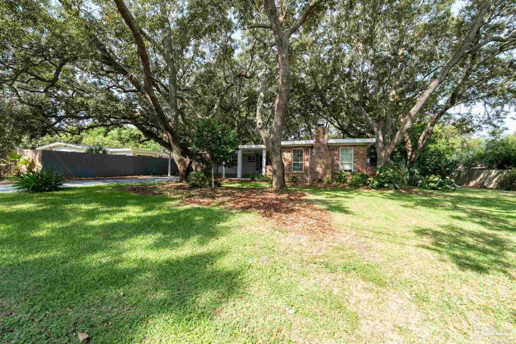 Gulf Breeze Proper. 3-bed, 2-bath mid-century modern home (built 1958) offers 2,116 sq ft of living space on nearly half an acre — a rare find in the heart of Gulf Breeze. Classic details blend with thoughtful updates, including an updated kitchen and baths, hardwood and carpet flooring, central HVAC, and a cozy fireplace. The layout features a sunroom plus a bonus rec room or second living area, giving you options for entertaining or relaxing. Outside, a 2-car carport adds convenience, while the detached, air-conditioned office provides the perfect setup for working from home, creative projects, or hobbies and huge workshop for gardening or storage. With masonry/stucco & brick exterior, this property delivers durability and timeless style. Families and out-of-area buyers will appreciate the large lot, Gulf Breeze Elementary/Middle/High School zoning, and proximity to Pensacola, the beach, and everyday amenities. Move-in ready with mid-century charm, this home is positioned to be both practical and inspiring.