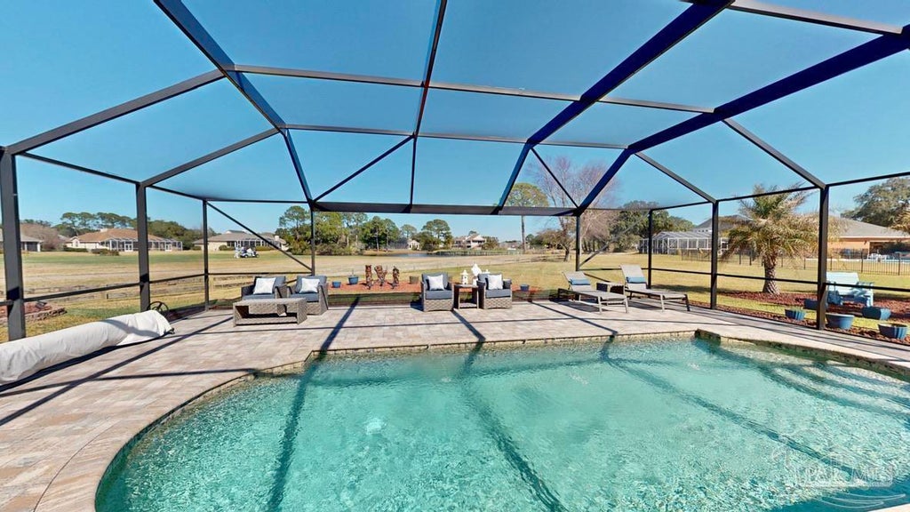This beautifully updated 4 bedroom, 3 bathroom residence in Tiger Point Village offers breathtaking views of Tiger Point East signature hole #5 with its island green, along with glimpses of Santa Rosa Sound from the pool area, front of the house and the newly enclosed Florida room. Designed with both comfort and entertainment in mind, this single story split-level floor plan boasts multiple living areas, creating the perfect space for relaxation and hosting guests. The updated kitchen features stainless steel appliances, a walk-in pantry and ability to serve straight into the Florida room. The master suite features a walk-in shower, separate soaking tub and walk-in closets. Two other bedrooms share a jack and jill bathroom with walk-in shower. Major upgrades bring peace of mind, including a newer roof, HVAC system, and updated ductwork for improved efficiency and comfort. From the Florida room, step outside to your private oasis. A heated gunite pool, enclosed within a screened lanai, making it enjoyable year-round. Whether you're soaking up the serene golf course views, hosting gatherings, or simply unwinding, this home is truly an entertainer’s dream. Don’t miss this rare opportunity to own a move-in-ready gem in Gulf Breeze! Schedule your private showing today.