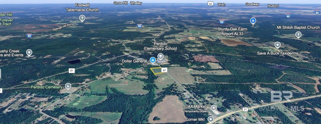 5.4 acres, as per Tax Assessor Website in the middle of town, 499’ of road frontage located off of CR 47!! Endless possibilities with easy access to either Interstate 65 or State Hwy 31. Conveniently located to schools and shopping with Perdido Elementary directly across the street, and Dollar General, Post Office, and Churches in walking distance. Perdido Exit 45 is only one exit away from the new Aluminum plant in Bay Minette(8 miles). Buyer to verify all information during due diligence.