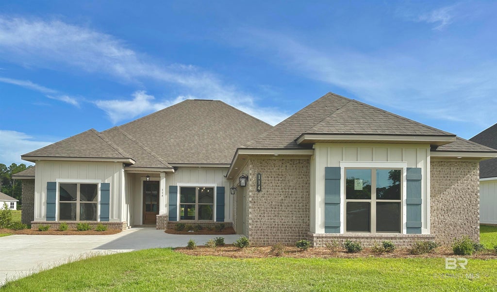 Move-In-Ready! Welcome to 114 Daybreak Trail, Fairhope, AL 36532. Come see the Holly floorplan in our newest Fairhope community, Harvest Green West. A space for every imaginable use, this house exudes luxury and comfort. Enter through the heavy-wood door into the foyer. The open-air layout allows the formal dining room to open to great room area with gas fireplace and the chef’s kitchen overlooking the family room. The gourmet kitchen boasts beautiful painted cabinetry, gorgeous quartz counters, tankless water heater, large work island, farmhouse sink, gas cooktop stainless steel dishwasher, and built-in wall mounted oven and microwave. The convenient breakfast nook off the kitchen includes access to the large rear covered patio. The owner’s suite boasts plenty of room for heavy furniture and hails a spa-like primary bath. Enter the lavish primary bathroom with a separate soaking tub, double vanities, seamless glass & tiled shower, linen closet and separate water closet. Enjoy a large primary walk-in closet, utilized by sturdy wood shelving for plenty of storage. This home showcases true “split” layout as two guest bedrooms and a full bath are on the opposing side of the home. You will find extra convenience with a large laundry room with wash sink and half bath by the door leading to the garage. Retreat upstairs to a large 4th bedroom with walk-in closet and a full bath and large bonus room. This home is being built to Gold FORTIFIED HomeTM certification. It is also a ''Smart Home'', a standard package that includes a Kwikset lock, Sky Bell, and digital thermostat, all of which are synced with the Qolsys IQ touch panel and an Echo Dot device. In addition, the home includes a one-year builder warranty and a 10-year structural warranty, contact us to schedule your tour and discover Harvest Green West today! Buyer to verify all information during Buyer to verify all information. Buyer to verify all information during due diligence.
