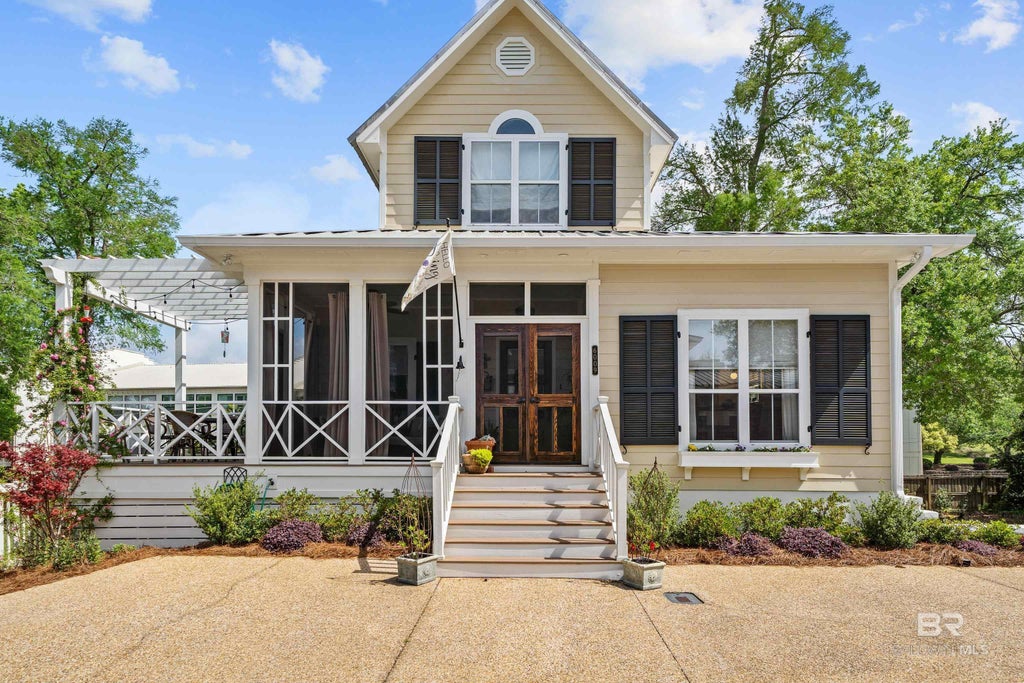 Located by the shores of Mobile Bay, this lovely, three-story, traditional cottage offers the perfect blend of charm, comfort, and coastal living. A short stroll out the front door leads you to the Bay Place pier where you can view stunning sunsets, fish, boat, and gather with friends and family. You can also have your very own boat slip. In a matter of minutes, you can be at the shops, restaurants, and activities of both downtown Fairhope and quaint Point Clear. Enjoy peaceful walks along the bay to the Fairhope pier and park, taking in the beauty of this sought after location. Entering the main level through the screened porch, you’ll find an open floor plan featuring a large living room with high ceilings, rich wood floors, and a cozy wood burning fireplace - an inviting space for relaxing and entertaining. The beautiful designed kitchen boasts a large island overlooking the living area, stainless appliances including a gas range, and custom cabinetry with ample storage. Enjoy bay views and coastal breezes from the porch and adjoining deck. The primary suite, located on the main level, offers a private retreat with easy access to the main living areas. Upstairs you’ll find two additional bedrooms and a full bath, providing comfortable accommodations for family and guests. The home also features a two-car garage with extra storage on the lower level accessed by a shared drive. Enter through the garage to a spacious bonus room and bath. This room has multiple uses including a 4th bedroom, office, or media room. As part of the Bay Place Homeowners’ Association, residents enjoy the convenience of a well-maintained community including the private pier, gazebo, bulkhead, fencing, and private drive. This is your opportunity to experience the best of Fairhope living! Buyer to verify all information during due diligence.