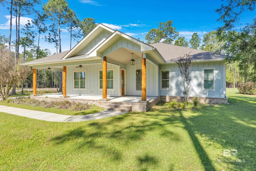 Seller offering $5000 in concessions with acceptable offer! Use $5,000 towards closing costs, upgrades, or any other cash needs at closing. A great way to reduce your out of pocket expenses and personalize your new home!! Fantastic 3-bedroom, 2.5-bath home located just one row off the water in the highly desirable Wolf Bay Point neighborhood. This coastal gem is packed with standout features, starting with a spacious front porch perfect for morning coffee and a stunning wood-burning fireplace on the screened-in back patio—ideal for year-round relaxation. Inside, the master suite offers dual walk-in closets, a luxurious claw foot tub, and a beautifully tiled walk-in shower. The open living area features double-sided gas logs to create the perfect ambiance from every angle. Built for comfort and convenience, a tankless water heater for endless hot water, a propane cooktop, and a stylish wet bar—perfect for entertaining. Located in the Elberta school district and just minutes from the Beach Express and Foley shopping, this home delivers the best of quiet bay living with quick access to everything you need. Buyer to verify all information during due diligence.
