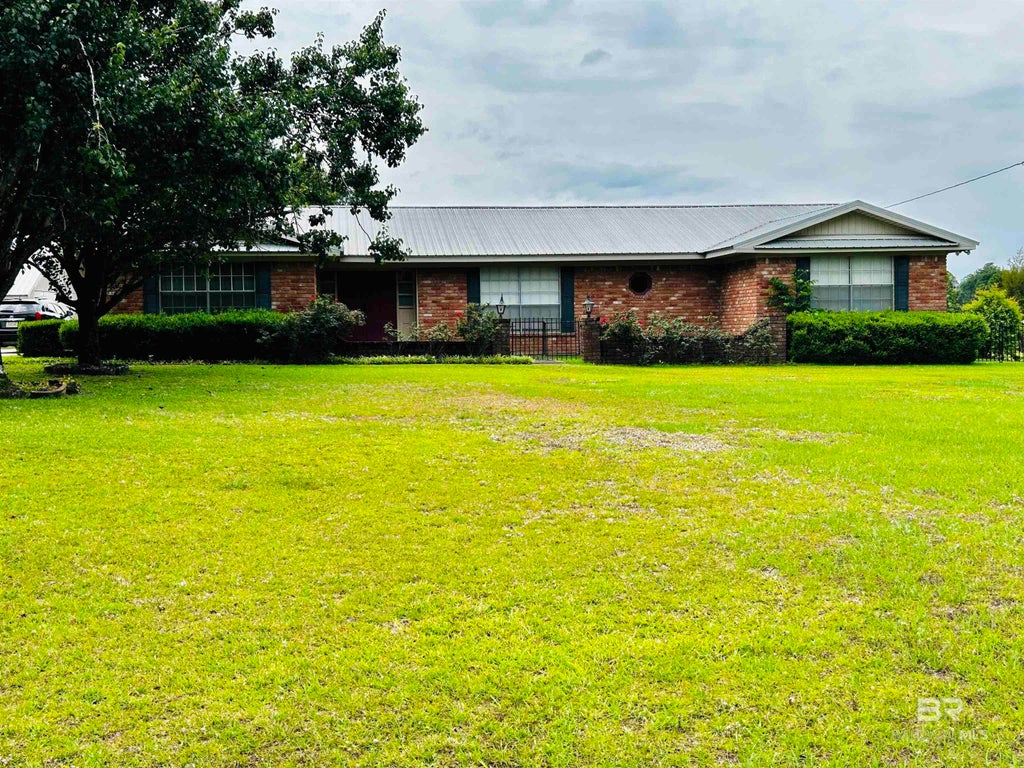 Nestled on a sprawling 6.7-acre parcel in the highly desirable Baldwin County, Alabama, this charming 2,640 square foot 4-bedroom all brick ranch home offers a blend of classic 1970s character and modern updates. Built in 1970, the residence features a functional layout with 2 1/2 bathrooms, providing ample space for a growing family or those who enjoy having guests. Inside, you'll find a comfortable den perfect for relaxation and a separate living room ideal for entertaining. The dedicated dining room offers an elegant space for family meals.Peace of mind comes standard with this property, thanks to a brand new air conditioning system ensuring year-round comfort and new hex water piping through the home, a durable 50-year metal roof installed in 2014 offering long-lasting protection from the elements. With an acceptable offer The sellers will offer a home warranty to cover the cost of any issues for a year and the buyer can renew after that period. The seller will leave standard appliances in the residence including the refrigerator and washer and dryer. Home will be offered ***AS-IS WHERE IS***Adding significant value and versatility to this property is a substantial 1500 sq ft cinder block building, with plumbing and complete with a 2-car garage and upstairs storage. This structure presents an incredible opportunity to create the ultimate man cave, workshop, or space for pursuing hobbies and activities.For those with outdoor equipment or recreational vehicles, a spacious 1000 sq ft steel barn provides ample storage for boats, tractors, and more. The property includes a dedicated RV/mobile home hookup, equipped with a separate power pole and meter, as well as its own septic tank. This setup offers excellent potential for additional income or providing a convenient living space. This Baldwin County gem truly offers a unique combination of comfortable living and versatile outbuildings. ***RV does not convey** Buyer to verify all information during due diligence.