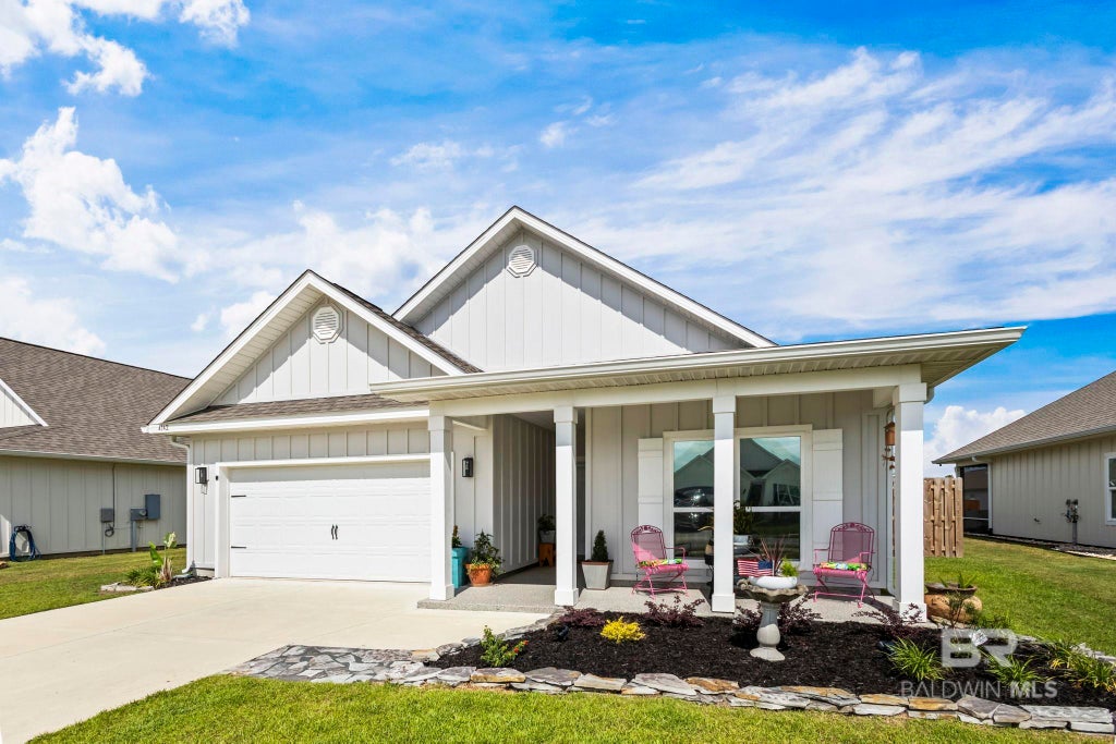 Welcome to this immaculate 3-bedroom, 2-bath home nestled in the highly sought-after 55+ active community of The Village at Craft Farms. Offering a vibrant lifestyle and top-tier amenities, including pickleball courts, a putting green, community pool, and included lawn maintenance, this home blends comfort, convenience, and resort-style living. Step inside to an open-concept layout bathed in natural light, with privacy-enhancing reflective windows that offer seclusion without sacrificing sunlight. The spacious kitchen features stainless steel appliances, abundant cabinetry, and a functional flow for everyday living. The primary suite is a serene retreat with a walk-in closet that connects directly to the laundry room, a double vanity, and a custom tile shower. Outdoor living is just as impressive with a beautifully landscaped backyard boasting custom stone pathways, a tranquil waterfall feature, and multiple seating areas, for quiet mornings or entertaining guests. Enjoy relaxing evenings on the screened-in back porch or greet neighbors from the charming covered front porch. Additional features include a two-car garage and a location that’s just minutes from medical service, shopping, dining and the BEACH. Don’t miss the opportunity to live in this vibrant community! Buyer to verify all information during due diligence.