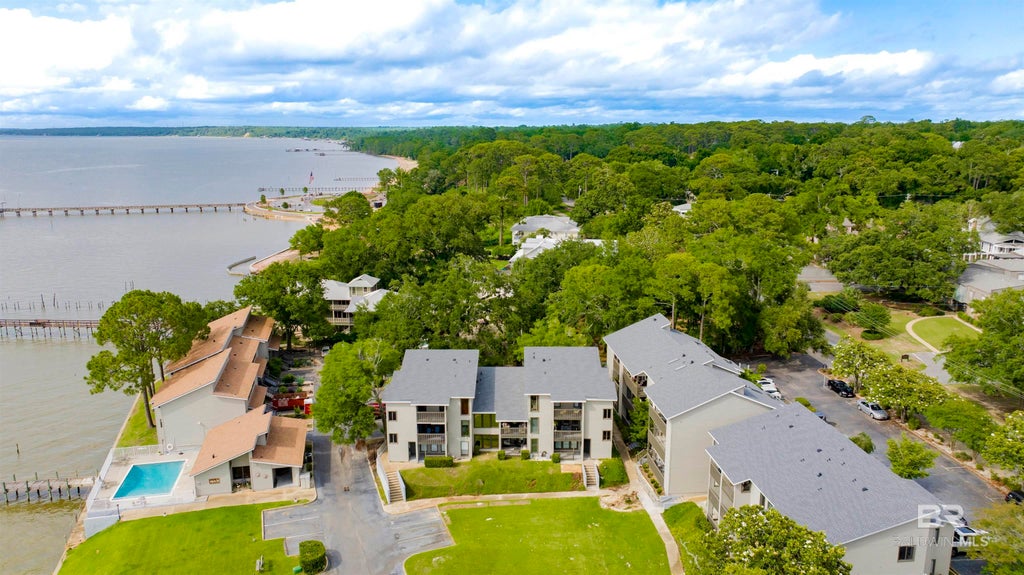 Sweeping Mobile Bay views from nearly every room and two private balconies overlooking the stunning Mobile Bay and its magnificent sunsets. Sold Furnished and ready to move into with seller reserving a few items. Bay Winds is walking distance to Fairhope pier, South Park, town and boat launch. No one is living above you or below you in this one-of-a-kind exquisite home. This was the developer's own unit and comes with the only covered car parking in the building (2 cars), and the very best views. This property has an oversized Luxe Washer & vented Dryer. This unit was gutted to the studs in 2012-13 and has Pella windows, heart of pine floors throughout, ship-lapped walls, vaulted ceilings of wood in the kitchen, dining and living areas. Bosch appliances, and state-of-the-art cook's kitchen with Caeser stone countertops, large kitchen island for a breakfast bar, and an abundance of cabinetry for storage. The guest suite on the main level offers an additional bedroom/living area that has a pull out sofa for a 3rd sleeping space which will remain. It can also be used as flex space as an office or living area. Custom walk-in shower. Primary bedroom has an enormous walk-in closet. Water, Trash sewer, clubhouse, pier and pool, common area landscaping and insurance are included in the HOA fee. Interior feels brand new and now the exterior is new too! Replaced Air handler in 2021, added oxidation, UV system with odor control chamber and Ecobee thermostat with voice control. Custom window treatments remain. Darkening shades behind the shutters are in the primary. Seller is a licensed Realtor. Buyer to verify all information during due diligence.