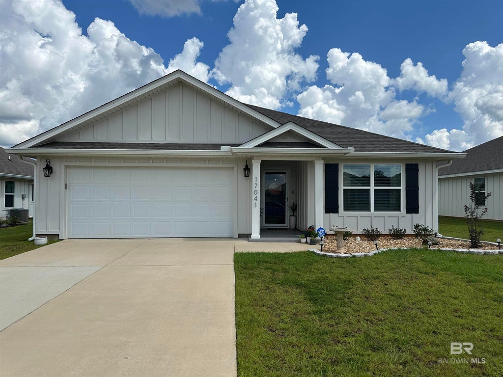 Discover a home that is "better than new"! Must see upgrades make this home the one you want to see!l This isn't just a house; it's a haven of thoughtful enhancements for modern living. From the moment you arrive, you'll notice the enhanced curb appeal with a tiled front stoop, new garage light fixtures, gutters, and a storm door. Inside, you'll immediately appreciate the seamless wood-look tile flooring that flows throughout and new quality granite countertops. Comfort and organization are key, with beautiful, functional wood shelving in all closets and ceiling fans in every room. The spacious, open-concept split bedroom layout provides both privacy and connectivity for daily life. Step out onto the covered back porch and soak in the tranquil pond views. With a neighborhood playground for recreation and a superb location off HWY 59, you're just minutes from I-10, Robertsdale, Foley, and the sun-kissed beaches. Buyer to verify all information during due diligence.