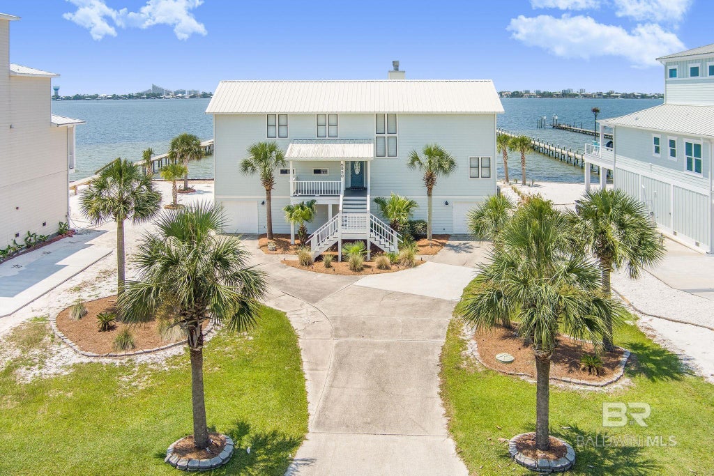 Featuring breathtaking panoramic views of Perdido Bay, Intercoastal Waterway, and the Perdido Pass, this stunning waterfront home is located in the gated private community of Innerarity Shores. This 3143 sqft home features 3 bedrooms, 2 ½ baths, an oversized living area, separate dining room, additional loft area that could be used for as a den, and an office. Its professional grade kitchen comes equipped with gorgeous granite countertops, Viking range & in-cabinet microwave, and under counter icemaker. Work or wind down in the incredible master suite, featuring a private office with direct view of the Intercoastal Waterway, wood burning fireplace, and completely remodeled bathroom with marble countertops, double vanities, large walk-in shower with dual shower heads and an additional rain shower head, soaker tub, and large walk-in closet with custom built-ins. Upstairs, you’ll find a completely remodeled bathroom and large storage attic along with the loft and bedrooms. Enjoy afternoons on your back patio featuring an all new outdoor kitchen, including a Viking gas grill, large Green Egg, concrete countertops, mini fridge, sink, and beer tap, or relax in the hot tub and loungers overlooking the remarkable views of Perdido Bay. Only steps away, the all new 400ft long pier takes you into deep water and features flow through decking, wave runner lift, fish cleaning station with sink, and a 24,000LB boat lift. The bottom half of the house is also fully enclosed and includes 3 garage doors. New HVAC units installed in 2024 and all new high impact windows and sliding doors installed in 2024. *Pre-recorded video walkthrough available upon request* Buyer to verify all information during due diligence.