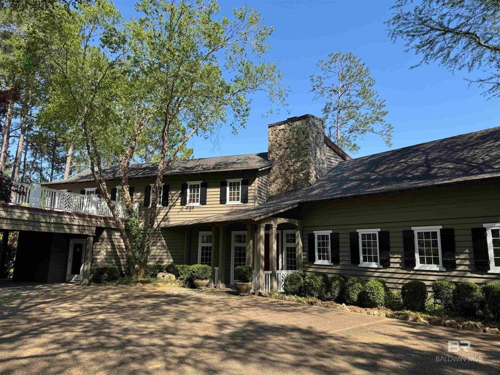 Discover ultimate lakeside living in this beautifully custom-designed 4-bedroom, 4.5-bath home overlooking the private and pristine 250-acre Steelwood Lake. Thoughtfully crafted with timeless materials and elevated finishes, this one-of-a-kind home offers warmth, elegance, and unmatched lakefront serenity. Inside, you'll find antique heart pine floors and antique heart pine paneling throughout, creating a rich and inviting atmosphere. The spectacular two-story great room showcases a dramatic 25-foot ceiling, stone wood-burning fireplace, and floor-to-ceiling Pella windows that capture sweeping views of the lake. The gourmet kitchen features wood cabinetry, stone countertops, stainless steel appliances, and high-end hardware—ideal for both casual meals and entertaining. A wet bar and main-level game room provide additional space for relaxation and fun. The primary suite is a tranquil retreat with direct access to the porch, lake views, a garden tub, double vanity, and separate shower. Each of the four bedrooms includes its own private bath, ensuring comfort and privacy for all. Enjoy outdoor living year-round on the covered screened porch with cobblestone floors and a stone wood-burning fireplace, all set against the peaceful lake backdrop. Upstairs, two guest suites and a TV/media room offer flexible space for family and guests. Sold fully furnished, including designer drapes, custom bedroom linens, and furniture curated to reflect the charm and beauty of lakefront living—this home is move-in ready and waiting for you to enjoy. Buyer to verify all information during due diligence.