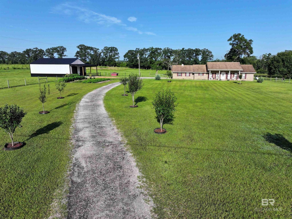 Welcome home to country living at its finest in Range, Alabama (Conecuh County)! This charming 4-bedroom, 3-bath home is tucked away on 9 gorgeous acres—complete with a stocked pond, brand new enclosed pole barn, and a huge outdoor entertaining space. Step inside to a spacious living room with beautiful views and a cozy gas fireplace, perfect for curling up on cool evenings. The kitchen offers plenty of space to cook and gather, featuring modern appliances and a walk-in pantry that’s ready for all your farmhouse storage dreams. Each bedroom is thoughtfully laid out with large windows that let the natural light pour in. The primary suite includes a walk-in shower and a well-lit vanity. Outside is where this property truly shines! A concrete patio with an outdoor kitchen for hosting friends and family. A new pole barn with two 16-foot roll-up doors, fully wired and ready for your storage needs, next project, or hobby. With a peaceful pond, fenced pasture, and plenty of room to plant a garden, raise animals, or simply enjoy the open space.. this home blends comfort and function with the beauty of rural life. Whether you’re dreaming of a homestead, a weekend getaway, or just more room to breathe, this one checks all the boxes. Let’s go look! Buyer to verify all information during due diligence.