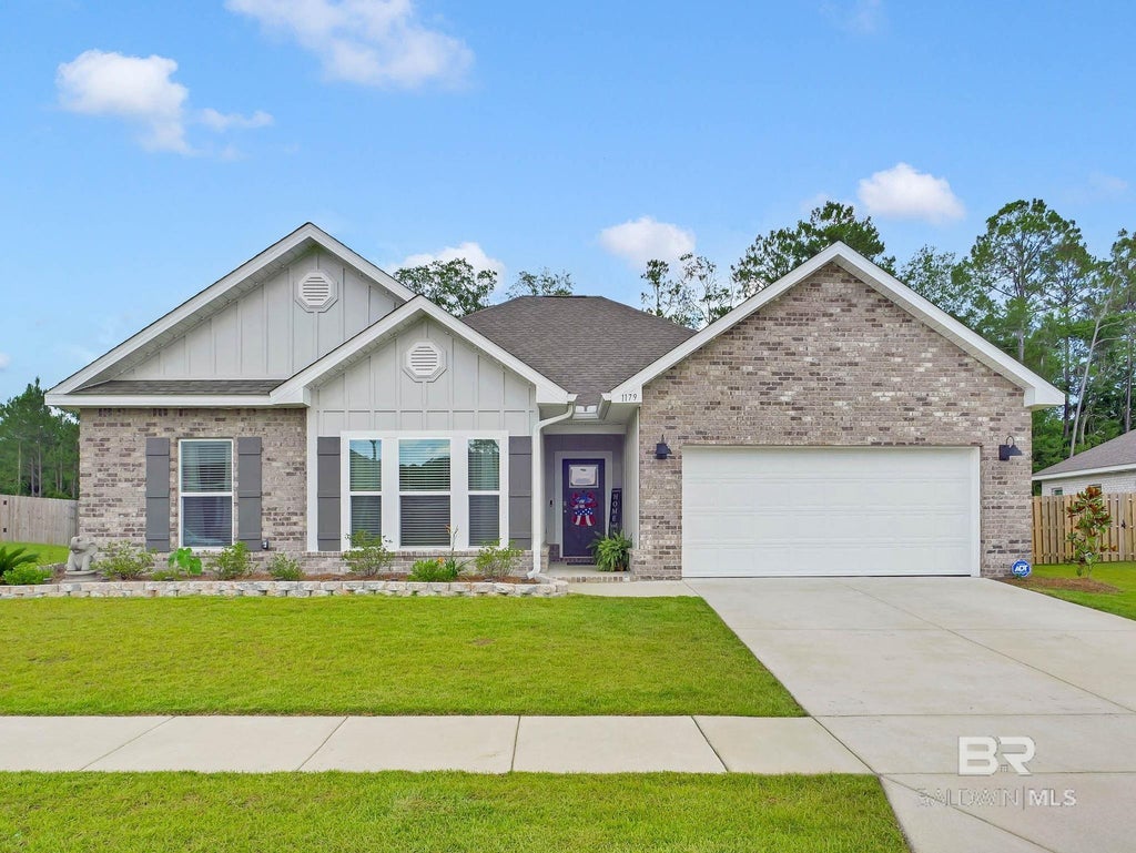 Welcome Home! Prepare to be amazed by this stunning GOLD FORTIFIED 4-bedroom, 2 bathroom home situated on an oversized lot backing up to 36 ACRES of protected common area for abundant privacy! This home was designed with entertaining in mind with open concept living room with built-in electric fireplace! The kitchen features upgraded painted cabinetry, granite countertops, stainless appliances and custom backsplash! This property features a split bedroom layout with oversized primary bedroom with abundant natural light with the primary bath offering a soaking tub, separate walk-in shower and double vanity w/ large walk-in closet. Additional features include custom mud-bench w/ wainscoting, exterior soffit lighting, screened-in porch, fully fenced yard + outbuilding, 6 inch gutters around house, and EVP throughout (NO CARPET). This home is conveniently located just minutes from the beach, Foley Beach Expressway, Highway 59, OWA, Tanger Outlet, shopping centers, grocery stores, medical offices and hospital. If you are looking for a beautiful move-in ready home in a desired subdivision, this is the one! Buyer to verify all information during due diligence.