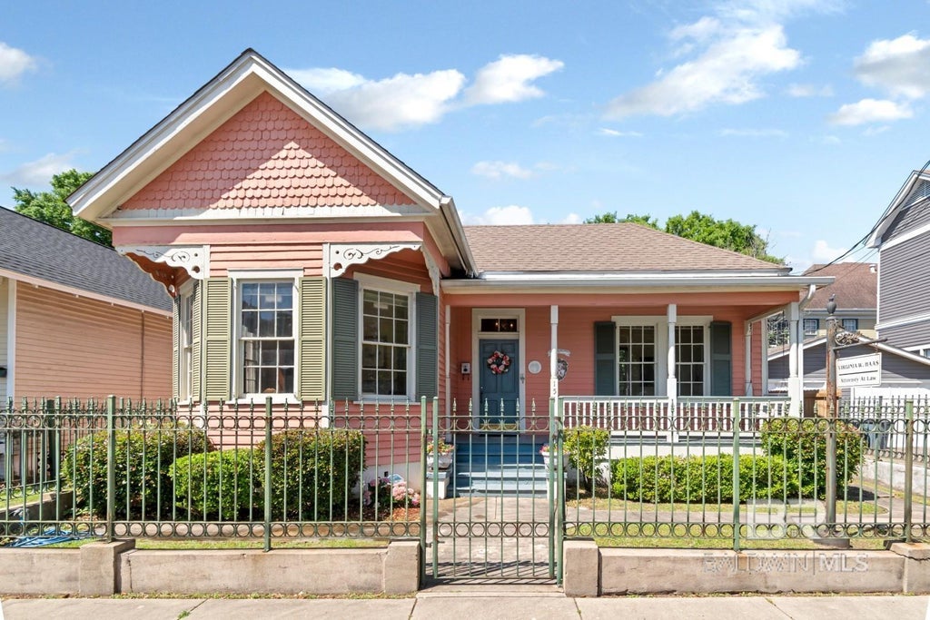 Back on the Market – No Fault of Seller!Step into history with this charming circa 1890 cottage in the heart of Church Street East. Currently serving as an attorney’s office for the past 35 years, this versatile property offers endless potential—whether as a residential home, professional office, rental investment, or even an AirBnB.Zoning: T-4 Mixed Use DistrictLocation: Walking distance to the courthouse and directly across from the new U.S. Army Corps of Engineers buildingHistoric Charm: Original heart pine floors and soaring 11’ ceilings throughoutLayout: Front office, conference room, waiting room, 2 additional offices, mail room, secretarial pool, kitchen, plus 1 full bath and 1 half bathFeatures: Electric gate with rear entry, well-maintained interior, and move-in ready conditionUpdates: HVAC replaced October 2024This is a rare opportunity to own a piece of history in one of Mobile’s most distinctive neighborhoods. Whether you’re looking for a unique office space or envisioning a stylish downtown residence, this property delivers. Buyer to verify all information during due diligence.