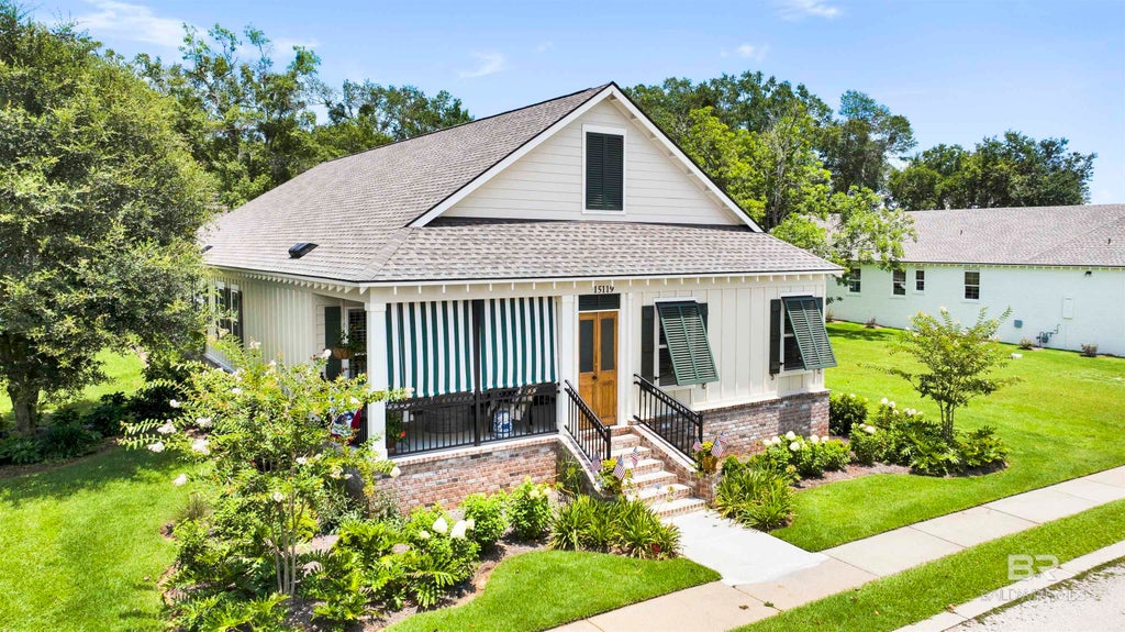 Welcome to this thoughtfully curated, custom-built cottage in The Commons at Magnolia Springs. Starting at the gated entrance, follow the brick-paved streets lined with mature oaks and beautifully maintained florals and greenery though this private and established community. Built in 2024 by Limitless Homes, this Gold-Fortified home combines classic charm with elevated upgrades and modern functionality, all situated on a corner lot in one of Magnolia Springs' most desirable communities. From the moment you arrive, you’ll notice the attention to detail and high-end finishes that set this home apart. The interior features an open-concept layout, a hardwired sound system with speakers installed throughout the home and porches, stunning LVP flooring throughout, crown molding in every room, a wet bar with ice maker and beverage cooler and the most charming design touches in every room. To start, enter through the gorgeous Charles Phillips doors onto the Charleston porch to enjoy a glass of lemonade in the shade while taking in the beautifully stained V-groove wood ceiling, iron railing and Sunbrella shades adding sun protection and privacy. The screened back porch with motorized hurricane shutters is equally as charming with its wood-burning fireplace and serene lighting. You'll also find ceiling outlets on the porch for lighting or extra fans and a Generac whole-home generator for peace of mind year-round. The chef’s kitchen includes a transferrable warranty on the appliances, and features a gorgeous built-in refrigerator and gas-burning stove. The butcher block island is complemented by the quartzite counters on the perimeter of the spacious kitchen with ample storage. With timeless style and top-tier craftsmanship throughout, this property offers a rare opportunity to own a move-in-ready home in a quiet, immaculately maintained community that features a pool, guest house, river house, creek access to allow easy access for paddle boarding, kayaking, and so much more!