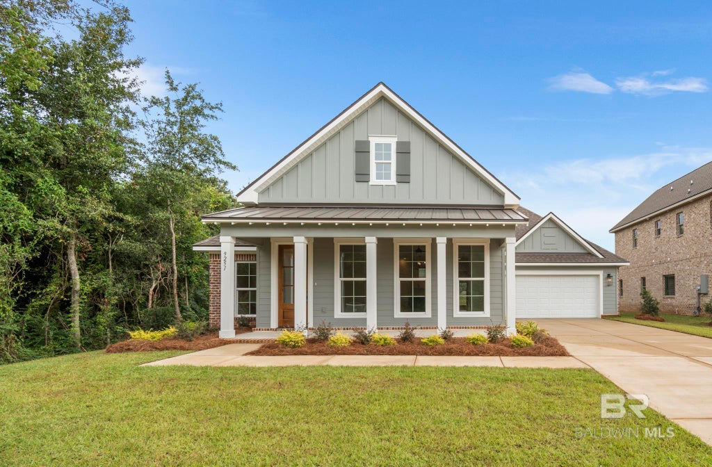 Under Construction* Welcome to the Poplar plan, a thoughtfully designed single-story home from Tower Homes that blends modern comfort with everyday functionality. This 3-bedroom, 2.5-bath layout features an open-concept living space anchored by a vaulted ceiling in the spacious family room and a cozy gas fireplace, creating a warm and inviting focal point. The adjacent dining area seamlessly flows into a chef-style kitchen, featuring a large island, quartz countertops, a walk-in pantry, and a premium appliance package that includes a gas cooktop and a built-in microwave/oven. The private primary suite offers a quiet retreat with backyard views, an oversized walk-in closet, and a luxurious ensuite bath featuring dual vanities, a walk-in shower with bench seating, and a private water closet. Bedrooms 2 and 3 are tucked toward the front of the home, sharing a full bath with double sinks and ample closet space. Convenience is key with a front-entry 2-car garage, drop zone, and large laundry room. A separate half bath near the garage entry is ideal for guests. Enjoy outdoor living year-round on both the front and rear covered porches, perfect for relaxing or entertaining. Located on Lot 1, Patch Place is a 64-lot subdivision located just off CR 13 at the end of Parker Ln. It is minutes from I-10 and is close to schools, shopping, parks, and more. Gold Fortified, the home includes a 1-year builder warranty, a 10-year PWSC structural warranty, and a 1-year. Termite bond with Formosan coverage. One or more principals of the selling entity are licensed real estate agents and or Brokers in AL. *Est. Completion OCT 2025 Buyer to verify all information during due diligence.