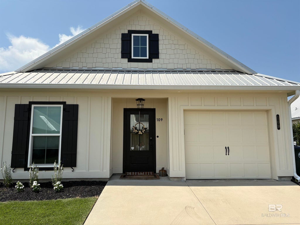 Unmatched, carefree living in a darling Fairhope cottage, custom built by Wachter & Co. Gold Fortified, wind impact rated windows, tankless hot water heater, board & batten exterior, metal roof, 2BR, 2BA, screened porch with single car attached garage. The custom kitchen includes cabinetry to the ceiling (abundant storage), pocket doors to hide appliances, tile backsplash, built-in spice rack, under cabinet lighting. Additional special features include vaulted ceiling with reclaimed wooden beams, designer ceiling fan and light fixtures, custom mini-blinds throughout, keyless entry, bench seat in walk-in shower, custom closets, and a quaint wooden screen door to welcome both you and friends. Luxury Vinyl Plank flooring throughout. Many large windows that welcome natural light. The HOA fee includes lawn care for each home. Buyer to verify all information during due diligence.
