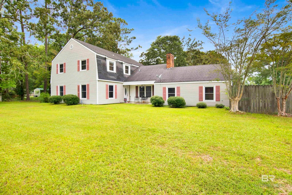 Charming country-style residence located in the center of town, ideal for buyers seeking additional rooms and more space. A tranquil lot adorned with trees while remaining close to town. Boasting 4 bedrooms and 2.5 bathrooms, encompassing 3,100 sq ft, in the center of Bay Minette. No homeowners association fees. The property includes a spacious private lot with a fenced backyard, a double carport, a game room, a dining room, a den complete with built-in shelves, a library, a storage room, a family room, a kitchen, a fireplace, and ample closet space for storage. The expansive fenced backyard provides enough room for parking RVs, campers, boats, and toys. The level backyard offers plenty of space to potentially add a swimming pool or hot tub. Flooring consists of wood/split brick, tile, and carpet upstairs. Excellent location close to all public schools in Bay Minette, Wal-Mart, the interstate, and the new aluminum plant, Novelis. The neighborhood features many sidewalks for walking, jogging, and cycling. There is a city pool and tennis and pickleball courts just a few blocks away. Plumbing was updated in 2021, with a new HVAC system and water heater installed in 2014, a new dishwasher added in 2022 and a new oven in 2025. Refrigerator, Washer/Dryer (2024) to convey (included) with the sale. Buyer to verify all information during due diligence.