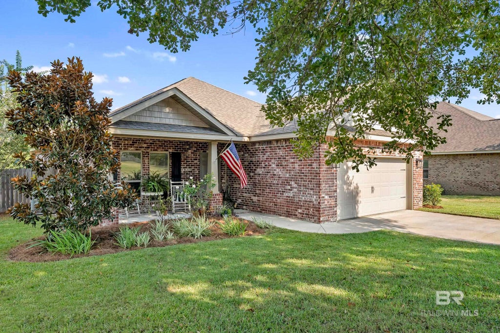 Welcome! This home boasts a variety of desired qualities, rare for this neighborhood, including a large oak tree in front yard, lending plenty of shade, situated on a 0.27 acre lot, a gas range with stainless range hood & a wood-burning fireplace with custom brick hearth & wooden mantle & an OPEN, UNOBSTRUCTED VIEW OF NATURE FROM LIVING ROOM, DINING ROOM & PRIMARY BEDROOM WINDOWS as there are NO BACKDOOR NEIGHBORS BEHIND HOME! Home is located in Phase 1 of neighborhood, with mature landscaping & boasts extra-wide, one-way streets, divided by an oak tree-lined median, just down the street from 1 of the 2 neighborhood pools & playgrounds. Fairhope Falls has a beautiful country feel, while still being just a quick drive away from Downtown Fairhope. Neighborhood has nature trails along Fish River, with multiple access points for fishing or relaxing on the shady, sandy areas through the woods. There are also 3 stocked fishing ponds. Additional updates to home include a new Bosch dishwasher, kitchen faucet & disposal, updated lighting in foyer, main living areas & primary bathroom, updated outdoor sconces, ceiling fan & market lights on back porch & deck, updated mirror in second bathroom, custom shelving in second bedroom & overhead storage shelving in garage. Home is the Isabella plan, with nearly 2,000 SF, 4 bedrooms, 2 bathrooms, is gold fortified & well-maintained. Home has a very large, elevated back deck that extends beyond the covered back porch, perfect for enjoying private outdoor living, grilling & dining. The back yard has mature crepe myrtles & hydrangeas & a wooden playhouse. Kitchen fridge and both TVs (living room & back porch) will convey with sale. Seller is licensed real estate agent- *SELLER CONCESSIONS* AVAILABLE WITH ACCEPTABLE OFFER! Buyer to verify all information during due diligence.