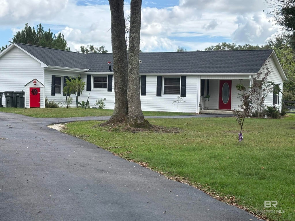 Horse property paradise. Adorable farmhouse located county, Robertsdale, AL. This 1835sq+-ft. home is situated on 3 beautiful acres at the end of a deeded private drive. It features three bedrooms, two bathrooms a living room and den with a spacious kitchen. Newer roof, windows, gutters,appliances and HVAC system with a service contract in place. House completed renovated with new paint, countertops ceiling fans, and lighting. Artesian well water! On Septic with brand new field lines. It’s the small details that shine , showcasing this amazing opportunity. On the property you will find a detached garage/work shop. But wait! Property also features an income producing cottage, renting for $1250 a month.(AIR BNB). No lease in place. Cottage opens up to an huge 2000sq ft wooden deck that surround the swimming pool. Enjoy hot days under the Gazebo overlooking your pool. But Wait there is More! Located on the property is a 3 custom stall barn with a tack room, feed room and a cowboy bunk house! This is no ordinary stable area, owner has made it into an entertainment area, with a bar and pool table. Whisky for your men beer for your horses…Wait! Custom professionally built round pen to work your horses. There is also an RV hookup for a camper with water. You will also find a garden shed with storage on property as well. Park your golf cart/ lawnmower. This is country living at its best. This one of a kind property will not last long. Schedule today for a viewing. Buyer to verify all information during due diligence.