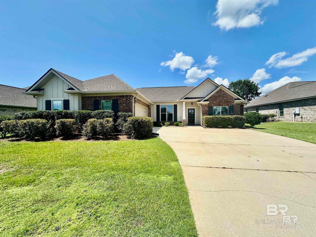 Immaculate 4-bedroom, 3-bath brick residence, meticulously cared for and upgraded with a Gold Fortified Designation. The interior spaces radiate a sense of calm and order, complemented by the generously sized bedrooms and baths in a split floor plan that yields space for all present. The Kitchen is a delight with abundant Granite countertops to create your culinary and entertaining sparks of joy.Even the pantry is a joyful area, freshly painted in "Sunshine" color. The home features an open concept with direct views to the GreatRoom and the Gas log fireplace. Step out from the Breakfast room to the covered rear porch with smooth transition (no steps) extended patio, creating an inviting outdoor oasis for relaxation and entertainment amidst the beautifully fenced yard, raised garden beds, a TuffShed on its own slab for ease of access of any of your prized possessions. For clarification of Gold Fortification, it is a standard that provides exceptional resilience, featuring fortified roofs and continuous load paths engineered for enhanced storm protection which is great potential for insurance savings. This home also has storm window coverings that will remain at closing. Come discover the beauty of this no pet, non smoking home in this great neighborhood that has a community park, sidewalks and a highly desired locale in DaphneAlabama. Shown by appt. Buyer to verify all information during due diligence.