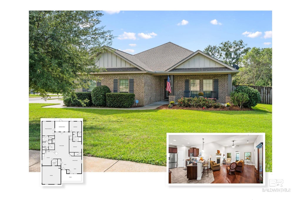 Fantastic home that shows like new in deal location of Hawthorne Glen. This community is very well located to hospital, restaurants and major access as well as just minutes from the heart of Fairhope! Fairhope has been called on of the best small towns in America and is a perfect place for entertainment, shopping and the most beautiful sunsets to be found over Mobile Bay. The floor plan is wide open with beautiful hardwood and luxury vinyl plank floors. There is lots of natural light and has a wonderful eat in kitchen with new stainless steel refrigerator (conveys) as well as granite countertops. As you enter the house, to the right is a flex space that can be used for dedicated dining or a great 2nd living area/study. The Great Room is open and spacious with a fireplace with gas logs. The Primary bedroom has his and hers closets with lots of space and a luxury feel. The back yard has a wonderful 200 sf screened porch and an additional 225sf covered patio. The yard is an oasis with beautiful flowers and birds everywhere! Seamless gutters around with double garage on corner lot. Refrigerator is new and conveys with the home. Washer and Dryer also conveys with the home. Buyer to verify all information during due diligence.