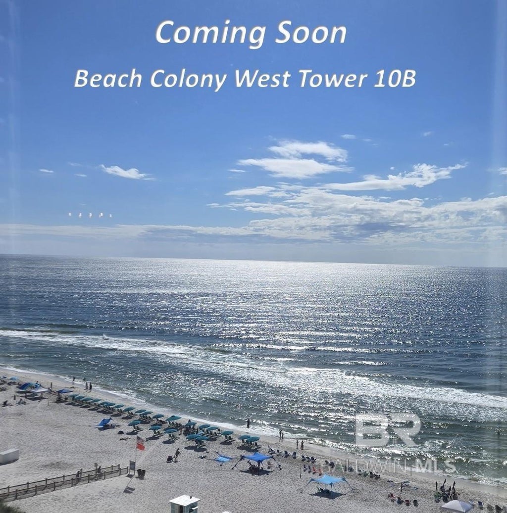 This is a Coming Soon Listing. This Beach Colony West Tower Unit B on the 10th floor is a beauty! The views are spectacular. Large balcony with unobstructed eastern and southerly views. This unit has many upgrades, including custom closets, crown molding, new ceiling fans, plantation blinds, plus updated bathrooms. Install dates for the water heater (2024), washer and dryer (2022), and HVAC (2019). Buyer to verify all information during due diligence.