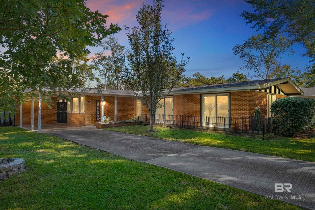 Cool and character filled 3-bedroom, 2-bath home in a well-established neighborhood featuring tongue-and-groove ceilings, natural light throughout, and stylish updates. Each bedroom has its own sliding glass doors leading to private outdoor spaces. The inviting great room offers a gas fireplace and a full wall of windows overlooking the manicured backyard. The galley kitchen is equipped with a gas stove and opens to a spacious grilling area ideal for entertaining. Through the French doors, a bonus room or formal dining room provides flexible living space that leads to the back porch and large backyard. This home is loaded with upgrades, including a whole-house generator, tankless hot water heater, gas appliances, and a Bronze Fortified roof for added peace of mind.Truly a one-of-a-kind property that combines charm, comfort, and convenience—NO HOA just minutes from downtown Foley, OWA, restaurants, and a short drive to the Gulf beaches. Buyer to verify all information during due diligence.