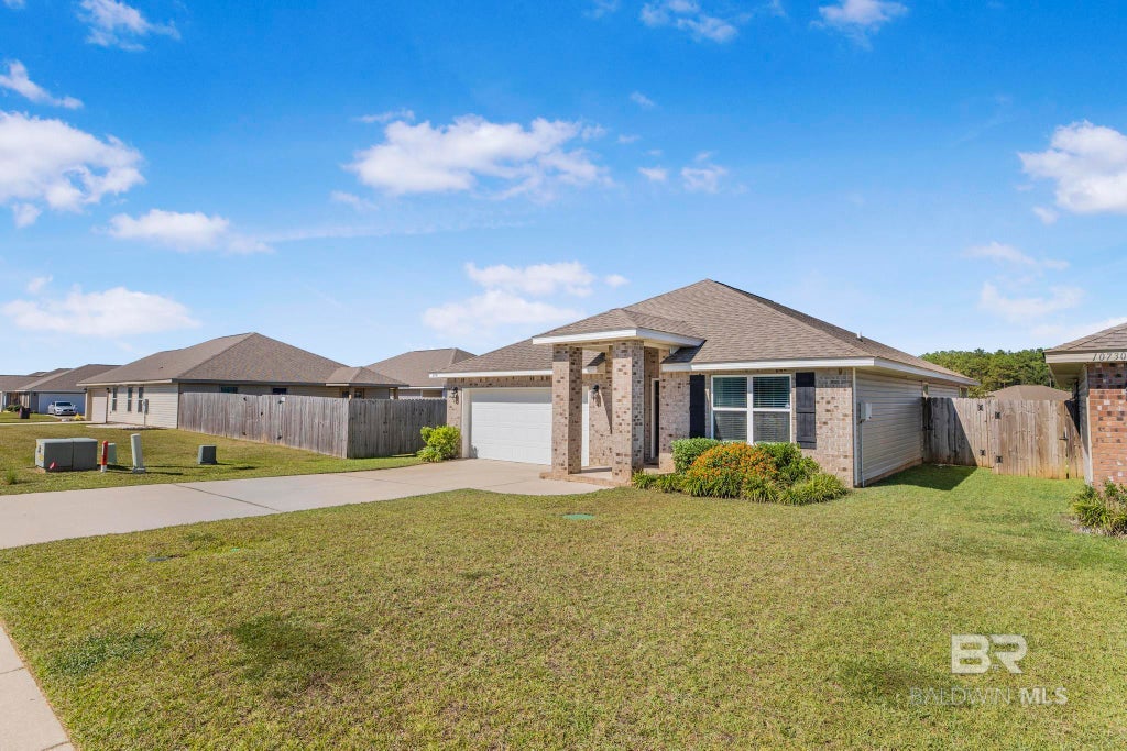 Enjoy the best of both worlds! Peaceful living with easy access to city conveniences. This beautifully designed 4-bedroom, 2-bath home offers modern style, smart technology, and a welcoming community setting. As you enter, you're greeted by a striking accent wall that combines organization and design, providing built-in storage and a touch of character right at the door. The open floor plan connects the living, dining, and kitchen areas, creating a bright, versatile space perfect for entertaining or relaxing.The kitchen features stormy Gray soft-close cabinets, granite countertops, stainless steel Frigidaire appliances, and a large island for additional prep and serving space. Luxury vinyl plank flooring throughout the home. Outside, enjoy the covered back porch for quiet mornings or unwinding in the evening. The two-car garage provides plenty of room for vehicles, bikes, tools, and recreational gear. This SMART HOME system offers convenience and control with app and voice-activated features for locks, lighting, and thermostat adjustments. Located in the Baker School District, this growing community features a pool and clubhouse, offering space to relax and connect. Just a short drive from Mobile, you'll love the quiet setting paired with nearby restaurants, gas stations, and other everyday conveniences. Built to Gold FORTIFIED standards for added safety and potential insurance savings, and USDA loan eligible, this home offers both quality and value. Experience modern comfort, convenience, and community all in one thoughtfully designed home. Buyer to verify all information during due diligence.
