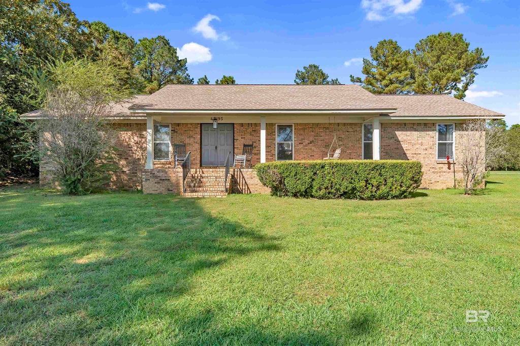 Peaceful and private, this updated brick ranch sits on nearly two acres overlooking a beautiful lake. The 4-bedroom, 2-bath home offers an open layout with a bright kitchen, deep pantry, and an expansive living area just off the kitchen. The dining space features a lovely lake view, while the living room includes a fireplace and opens to a private courtyard. From there, step outside to the courtyard-style patio and saltwater pool with a new liner, upgraded pump, and new salt cell. Beyond the pool is a volleyball area, creating a versatile outdoor setup ideal for gatherings or relaxation.The property offers both privacy and convenience — approximately 7 miles to I-65, 6 miles to the Florida line, and 10 minutes from the Baldwin County Courthouse. No restrictive covenants. Recent updates include a roof, HVAC, insulation, just installed whole-home Generac generator, and more — a well-maintained home ready to enjoy. Buyer to verify all information during due diligence.